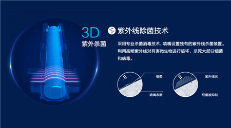 3D紫外線殺菌,噴頭設(shè)置專業(yè)的紫外線殺菌裝置,