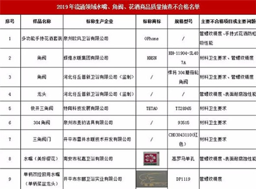 浙江:10批次水嘴、角閥、花灑樣品不合格