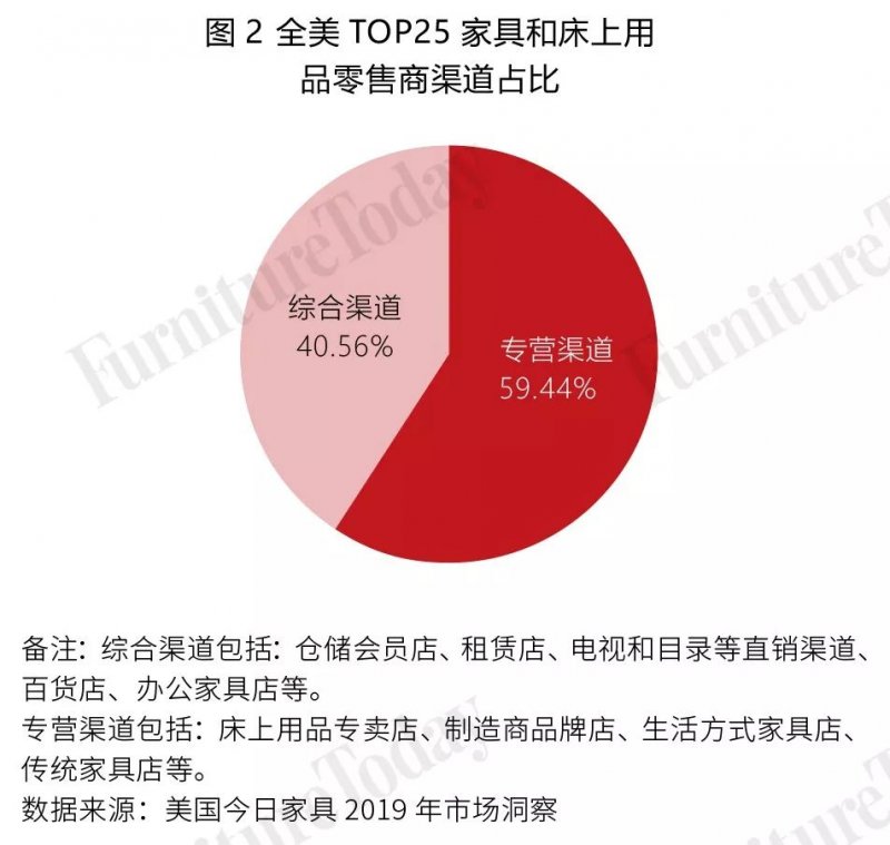 根據(jù)統(tǒng)計,在全美TOP25家具和床上用品零售商中,這兩類渠道在美國的占比幾乎是平分秋色。(見圖1)