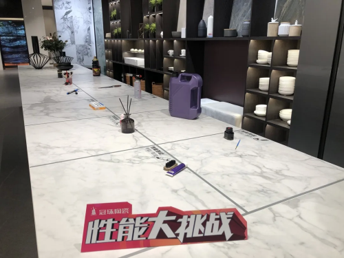 就在直播間,十萬+粉絲在線見證,巖板性能大挑戰(zhàn),噴火槍、墨水、指甲油等多種測試工具輪番上陣,最終也是倒下冠珠產(chǎn)品過硬的品質(zhì)之下!