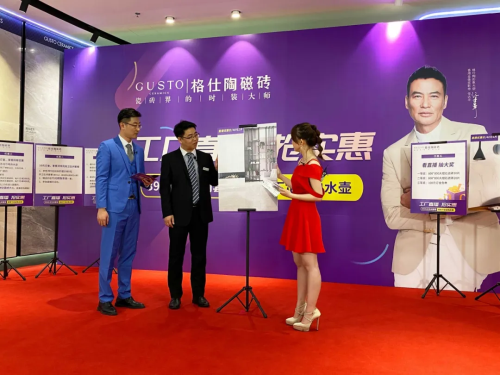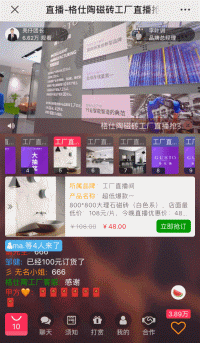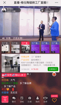 直播過程中,網(wǎng)紅主播跟粉絲們積極互動,客服實時疑難解答,更有格仕陶市場部經(jīng)理顏小華帶領(lǐng)大家通過高清攝像頭,全方位近賞時尚展廳與精美瓷磚,省掉一切中間環(huán)節(jié),廠門直對家門,讓觀眾購磚省時省力更省心。