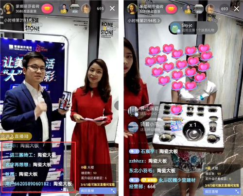 從線下門(mén)店到抖音APP,蒙娜麗莎再以抖音直播為抓手,開(kāi)啟“云家裝”,與消費(fèi)者線上對(duì)話。3月21日晚上7點(diǎn)半,蒙娜麗莎瓷磚聯(lián)動(dòng)全國(guó)經(jīng)銷商,在抖音平臺(tái)舉行了一場(chǎng)主題為“讓美好生活,大有精彩”的直播活動(dòng),美女主持搭檔資深家居顧問(wèn),帶領(lǐng)觀眾鑒賞上百款蒙娜麗莎陶瓷大板產(chǎn)品,從花色、風(fēng)格、性能等多個(gè)維度,教大家鑒別挑選好的大板產(chǎn)品,并對(duì)大板鋪貼工具進(jìn)行了介紹。直播過(guò)程中,更送出了ipad平板、瓷藝餐具、茶具禮盒等豐富獎(jiǎng)品。