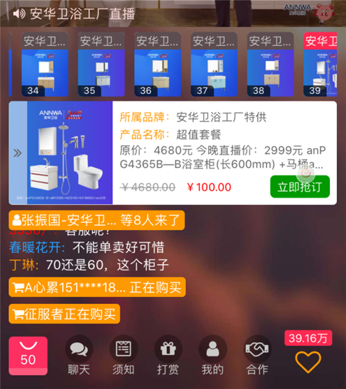 最后一天,直播期間安華衛(wèi)浴總裁溫總親自價(jià)到,總裁福利回饋,給你想象不到的優(yōu)惠。直播期間狂撒88萬現(xiàn)金紅包,現(xiàn)場(chǎng)不斷有業(yè)主朋友抽到1元秒殺低價(jià)馬桶,低價(jià)搶購產(chǎn)品,掀起了直播現(xiàn)場(chǎng)的陣陣高潮,讓直播間一度失控,搶購異;鸨。