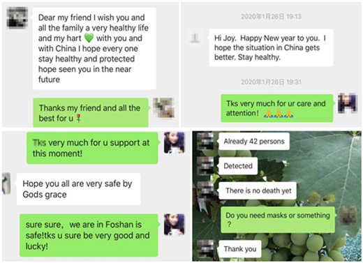 ▲新明珠集團員工通過郵件、微信等方式與國外客戶朋友暖心互動