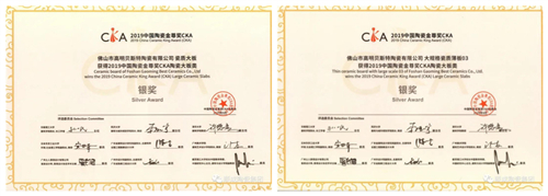 瓷質(zhì)大板獲“中國陶瓷金尊獎CKA陶瓷大板類銀獎”