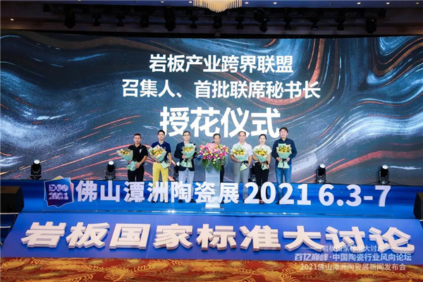 新明珠陶瓷集團(tuán)董事長葉德林為活動(dòng)致辭,并作為"巖板產(chǎn)業(yè)跨界聯(lián)盟"召集人為首批聯(lián)席秘書長舉行了隆重的授花儀式。