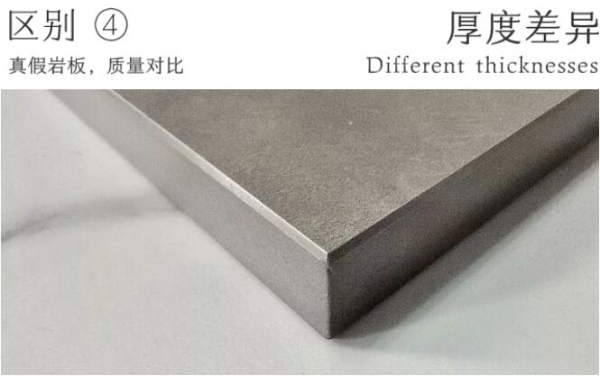 然而俗話說得好,“沒有對(duì)比就沒有傷害”,下面來看看新明珠巖板的高質(zhì)量巖板與假巖板的主要區(qū)別: