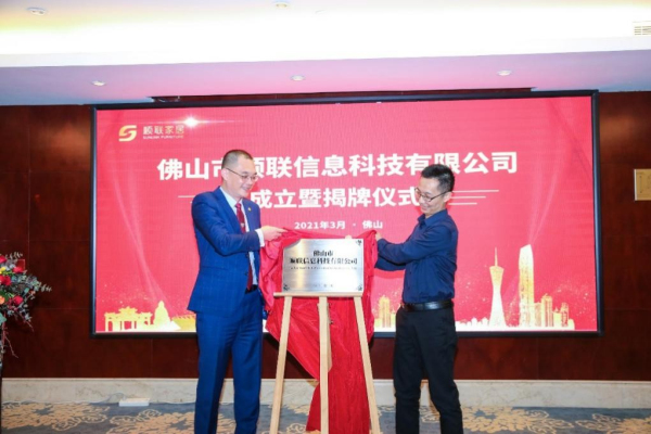 張晨先生和鄧運(yùn)文先生,為佛山市順聯(lián)信息科技有限公司的成立進(jìn)行揭牌儀式。
