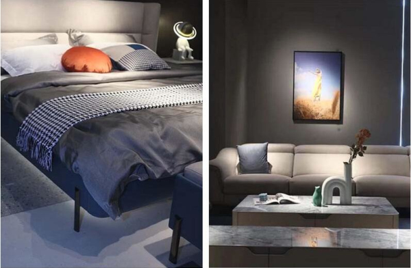 桌上的無線充電設(shè)備,床底的自動感應(yīng)燈,沙發(fā)上舒適度環(huán)保性更好的「科技布」,在名家具展斯可馨展廳里逛上一圈,你會發(fā)現(xiàn)努力將智能與科技變成「彩蛋」融入產(chǎn)品的他們,也算得上是這次深藏不漏的品牌之一了。