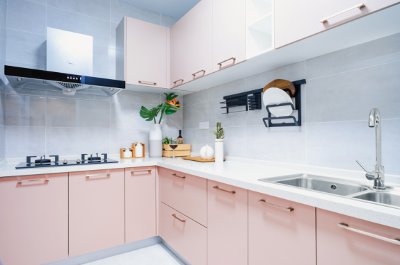 廚房裝修設(shè)計(jì)要注意尺寸,比如灶臺(tái)和水槽的距離不要太遠(yuǎn),否則拿食材時(shí)會(huì)弄得一地水,太近則沒(méi)有料理處理區(qū),最好留一手臂的距離。櫥柜太高或太矮,都會(huì)引起烹飪不適,以臺(tái)面高度90cm,臺(tái)面距離吊柜60-80cm為宜,洗菜炒菜都不會(huì)腰疼。