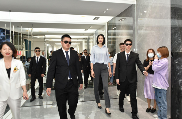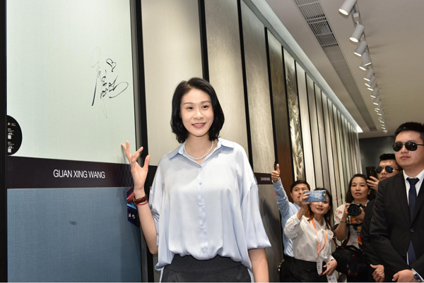 ▲趙蕊蕊參觀參觀冠星王總部展廳并連連點(diǎn)贊