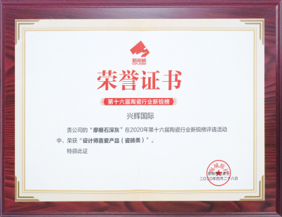 2021年5月,廣東興輝陶瓷集團(tuán)有限公司在佛山市政府召開的佛山標(biāo)準(zhǔn)工作推進(jìn)會(huì)暨首批佛山標(biāo)準(zhǔn)產(chǎn)品發(fā)布會(huì)上,憑借在“干壓瓷質(zhì)磚”產(chǎn)品類別超卓的生產(chǎn)標(biāo)準(zhǔn),被授予“佛山標(biāo)準(zhǔn)產(chǎn)品企業(yè)”榮譽(yù)牌匾。這是對(duì)興輝瓷磚在生產(chǎn)標(biāo)準(zhǔn)領(lǐng)域,高標(biāo)準(zhǔn)高質(zhì)量嚴(yán)要求踐行的嘉許和認(rèn)可。