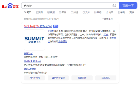 薩米特瓷磚正式攜手百度品牌專區(qū)