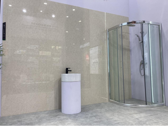 羅馬大石代800×2400(mm)輕便型護(hù)墻板是蒙娜麗莎重點(diǎn)展出的一款新品。相對(duì)于傳統(tǒng)的護(hù)墻裝飾材料以涂料、墻紙、墻布、木質(zhì)護(hù)墻板等,該系列新品是打造適老家居的環(huán)保材料,產(chǎn)品經(jīng)1200多度高溫長時(shí)間燒制,不隱藏污染性氣體,且防水防潮,清潔簡(jiǎn)便,防止細(xì)菌滋生,對(duì)老年人健康更為友好。
