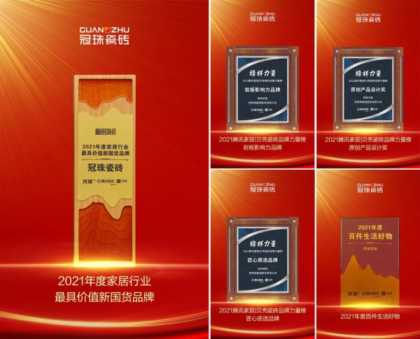 近期,由騰訊家居、貝殼主辦的“榜樣力量——2021年度騰訊家居|貝殼瓷磚品牌頒獎盛典”,以及由優(yōu)居主辦、貝殼找房戰(zhàn)略支持的“‘時代追光者’2021中國家居品牌力量評選榜單”兩大盛典隆重舉行。冠珠瓷磚憑雄厚的綜合實(shí)力、強(qiáng)大的品牌影響力、硬核的產(chǎn)品創(chuàng)新力,以及卓越的營銷打造力,斬獲12項(xiàng)榮譽(yù)大獎。極大彰顯了冠珠品牌升級以來的強(qiáng)勁勢能,更是行業(yè)與市場對冠珠“賦能中國人的家,締造美好人居生活”的肯定與嘉獎。