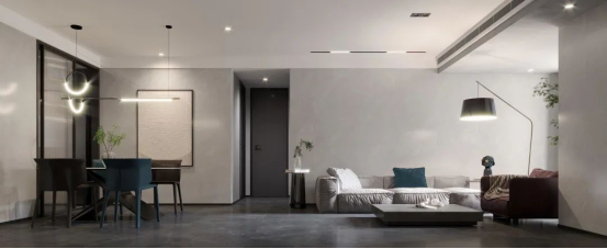 金屬的硬朗與灰的淡雅相互交織,剛?cè)岵?jì),利落線條勾勒出現(xiàn)代美,打造一個(gè)簡潔舒適且實(shí)用的棲息之地。