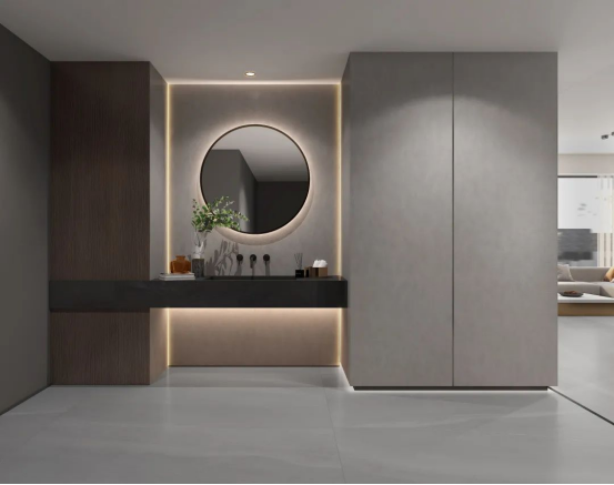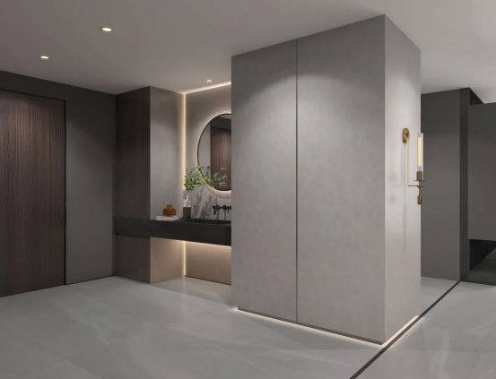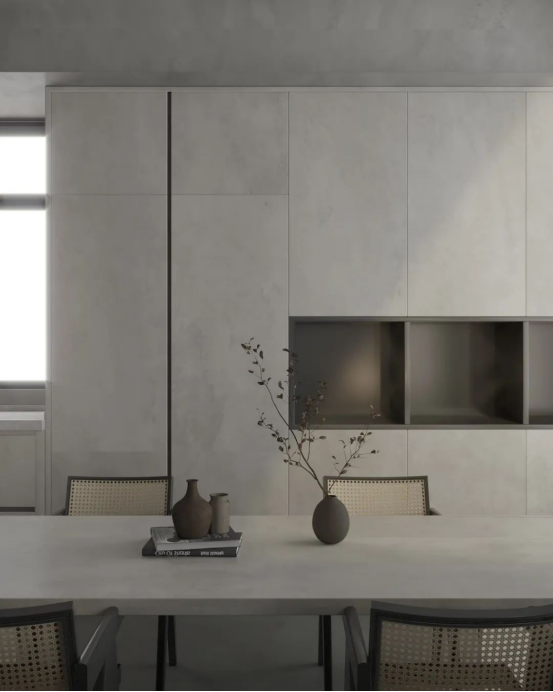 講究生活品質(zhì)與細(xì)節(jié)的人,可以將復(fù)合輕紋巖板定制為自己想要的家具,比如衣柜、廚衛(wèi)的收納柜和臺(tái)面等等,通過(guò)與玻璃、皮飾、線性燈具等元素巧妙的混搭與組合,能夠提高空間的輕奢感,打造獨(dú)有的現(xiàn)代家居。