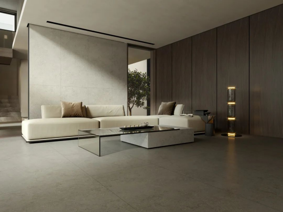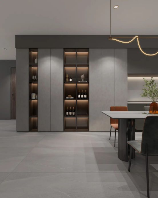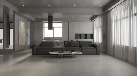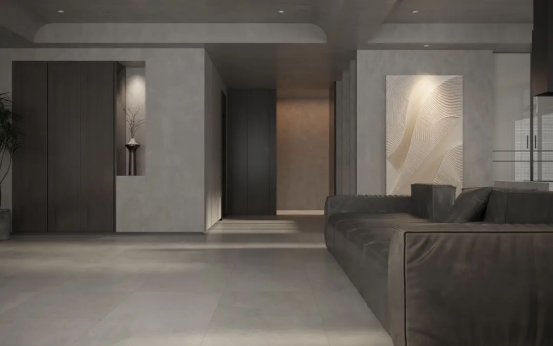 簡(jiǎn)潔而不隨意,高級(jí)而不浮夸,可以說(shuō)是現(xiàn)代輕奢風(fēng)的標(biāo)簽?臻g地面搭配柏林灰,沒(méi)有夸張復(fù)雜的紋理和豐富的色彩疊加,可以更好地襯托出軟裝家具的精致,由內(nèi)而外呈現(xiàn)出優(yōu)雅的氣質(zhì)。