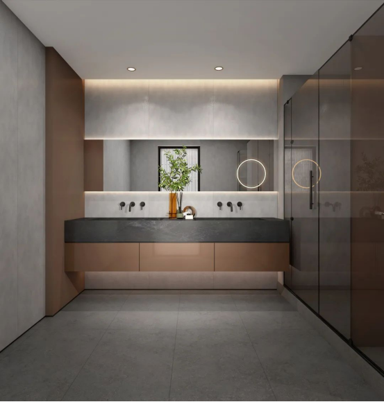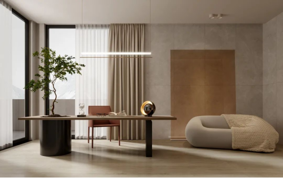 侘寂所代表的是對(duì)歲月痕跡的贊美,在漫長(zhǎng)時(shí)光的洗禮中發(fā)現(xiàn)生活的美好。空間搭配純粹有留白的瓷磚設(shè)計(jì),處處彰顯了化繁為簡(jiǎn)、返璞歸真的禪意美學(xué)。尤其是在這個(gè)浮躁的時(shí)代,侘寂風(fēng)更容易讓人內(nèi)心歸于寧?kù)o。