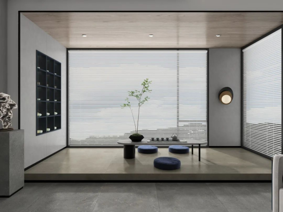 箭牌復合輕紋磚的留白,通過極簡的設計表達,由內(nèi)而外散發(fā)出意境之美,與新中式戶型的設計相輔相成,彰顯出居者的品位與氣質(zhì)。