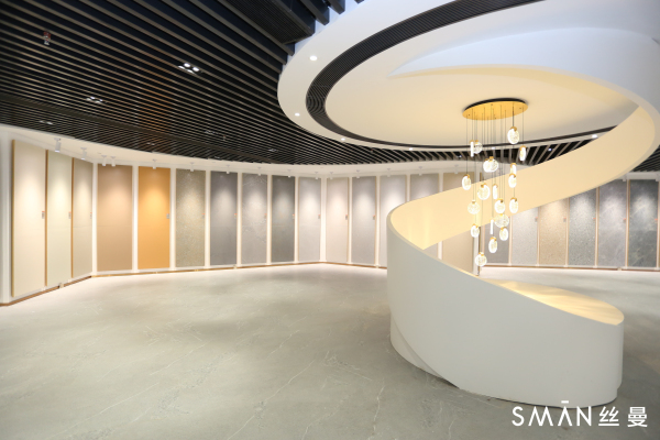2021年11月26日,在佛山智慧新城T11棟18樓,絲曼品牌的總部展廳正式對(duì)外亮相。和面積3000平方米的總部展廳一同亮相的,還有絲曼品牌歷時(shí)5年研發(fā)的創(chuàng)新產(chǎn)品“新一代透光巖板”,以及同樣令人愛不釋手的觸感瓷磚。