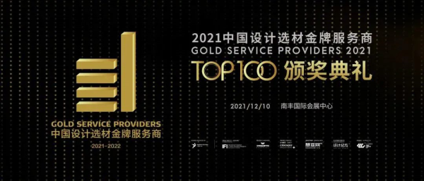 獲頒“2021中國(guó)設(shè)計(jì)選材金牌服務(wù)商TOP100”榮譽(yù)