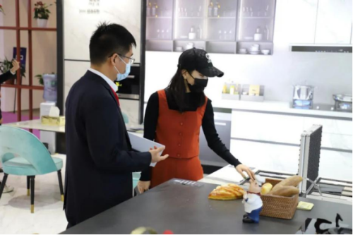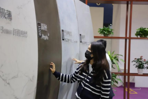 ▲不少觀眾對美爾奇3mm超薄巖板頗感興趣