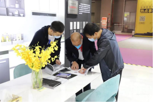 當天,中國對外貿易集團中心主任儲士家,中國對外貿易廣州展覽公司總經(jīng)理劉曉敏,中國高定展、高定俱樂部創(chuàng)始人張傳喜等嘉賓領導也來到美爾奇巖板展館參觀交流,深入了解了巖板在高端定制領域的應用和發(fā)展情況。