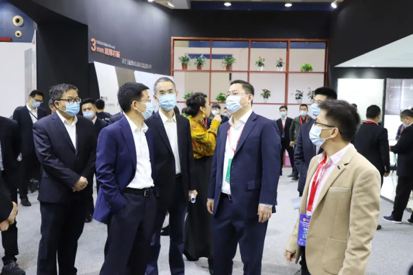 6大規(guī)格產(chǎn)品,3-13.5mm的厚度,覆蓋墻面、地面、臺面、廚衛(wèi)、家具飾面板等多種應(yīng)用場景,這不僅吸引了大批觀眾,也收獲了一眾大咖的關(guān)注和青睞。展會期間,中國對外貿(mào)易集團(tuán)中心主任、中國對外貿(mào)易中心集團(tuán)有限公司董事長儲士家,中國對外貿(mào)易中心集團(tuán)有限公司副總裁徐兵,全國工商聯(lián)原副主席、廣東省家居業(yè)聯(lián)合會主席、香江集團(tuán)董事局主席劉志強(qiáng),中國對外貿(mào)易廣州展覽公司總經(jīng)理劉曉敏,中國高定展、高定俱樂部創(chuàng)始人張傳喜等嘉賓均來到美爾奇巖板展館參觀考察,就美爾奇巖板在高端定制領(lǐng)域的應(yīng)用和發(fā)展進(jìn)行了深入交流。