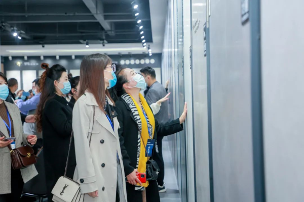 金絲玉瑪貝拉時光質(zhì)感磚強勢來襲!該系列產(chǎn)品取材于天然石材、皮毛、水泥、布紋等質(zhì)感元素,配以精湛的數(shù)碼精雕釉、超細干粒、肌膚釉等獨家工藝,素雅高級的格調(diào),自然細膩的原始觸感,使得現(xiàn)場嘉賓爭相觸摸體驗,并紛紛拍照發(fā)朋友圈分享!