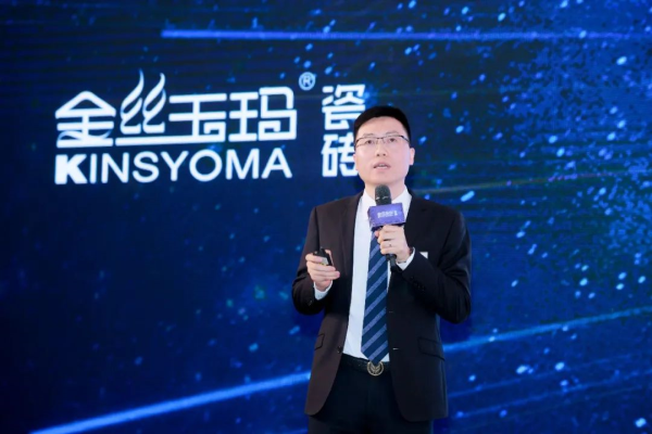 會上,黃佐耀還從產(chǎn)品花色、紋理設計、工藝、空間應用等方面詳細解讀K金星空巖板、K金星空護墻板、貝拉時光質(zhì)感磚、大商巖板等2022金絲玉瑪新品。