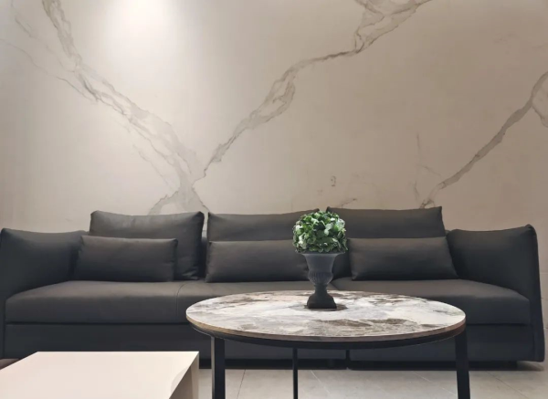 而在的泉州巖生態(tài)1號(hào)店里,一幅幅的畫作被替換成一片片如同藝術(shù)品一般的巖板,人們透過上面優(yōu)雅的花色和質(zhì)感,體會(huì)巖板獨(dú)有的魅力。