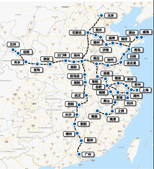 △歐萊克陶瓷高鐵冠名列車線路圖