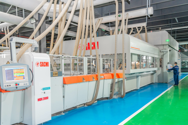 在蒙娜麗莎特高板數(shù)智化示范車間里,其三條生產線數(shù)控裝備占有率超過90%,自動化水平達到90%,實現(xiàn)從生產到裝配一站式自動化工作,智能化運作實現(xiàn)高效節(jié)能環(huán)保,綠色生產。