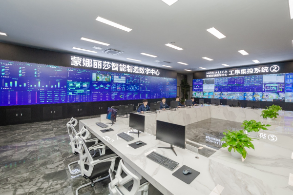 智能制造數(shù)字中心以數(shù)字設計、數(shù)字建造、數(shù)字運維為基礎支撐,接入生產(chǎn)設備的整個控制系統(tǒng),將生產(chǎn)、管理、運輸?shù)却?lián)起來,實時在線顯示每條生產(chǎn)線、每個工序的生產(chǎn)狀況,以及產(chǎn)量、質(zhì)量、耗能、耗電、耗水等數(shù)據(jù),為生產(chǎn)制造排產(chǎn)、能耗監(jiān)控等提供有力支撐。