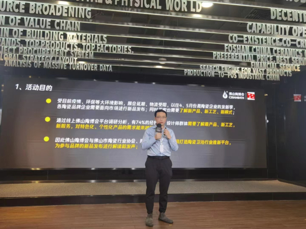 同時(shí),佛山中陶城集團(tuán)會(huì)展中心總經(jīng)理助理兼運(yùn)營(yíng)部總監(jiān)陳智鵬,對(duì)“質(zhì)感新主張—2022陶業(yè)新品發(fā)布會(huì)”整體活動(dòng)的背景、亮點(diǎn)以及推廣、參與形式等進(jìn)行了詳細(xì)講解。以下為具體解讀內(nèi)容: