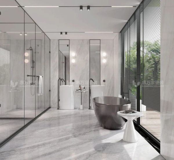 浴室恰是一處精神“自留地”,惠萬家?guī)r板800x2600mm系列NF-Q260809-017玉石白,以灰白色紋理全空間鋪貼,搭配極簡(jiǎn)淋浴房和黑色浴缸,營(yíng)造一個(gè)簡(jiǎn)約、色調(diào)統(tǒng)一的浴室空間。都市人在這里偷得半刻閑暇時(shí)光,洗去一身的疲憊,享受身心舒暢的狂歡,喚醒最佳的狀態(tài)!