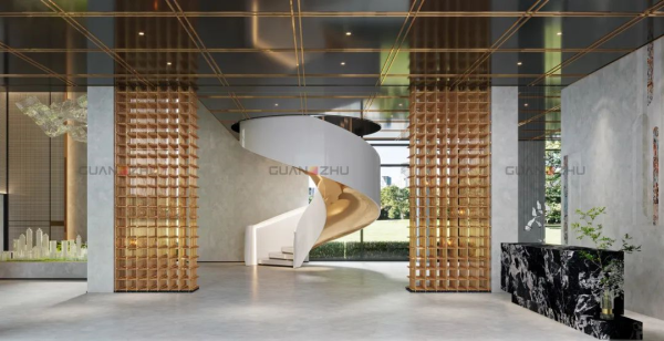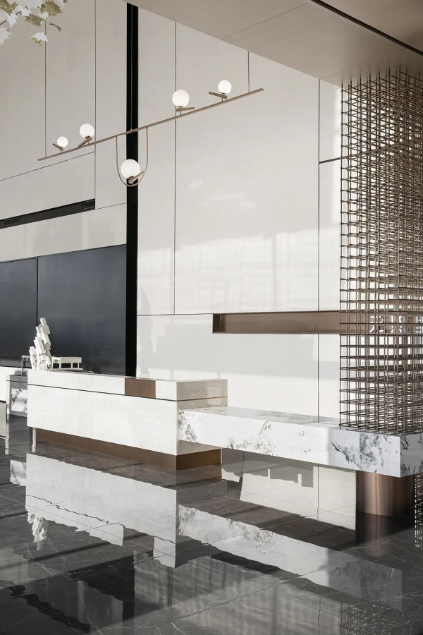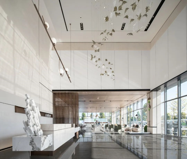 接待大堂往往空間面積較大,極簡設計如何實現(xiàn)不空洞、不浮夸又有看頭?
