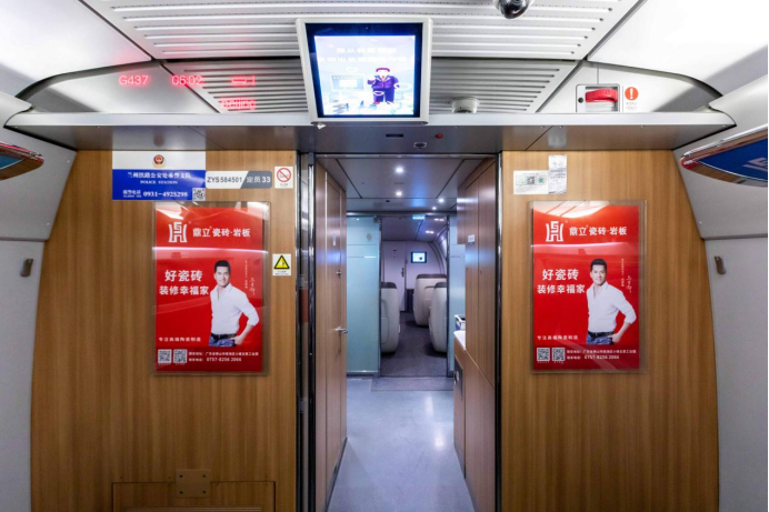 無論您的目的地在哪,這趟旅程一定會給您留下深刻的印象。鼎立瓷磚·巖板高鐵冠名列車通過車身彩貼、頭片、海報、桌貼、品牌天幕等多種高鐵列車媒體形式,全方位、多角度展示鼎立品牌理念,塑造沉浸式品牌傳播氛圍,這些設計讓置身于高鐵車間中的乘客,更清晰直觀地感受到品牌文化和實力,實現(xiàn)與乘客零距離接觸,勢必將進一步讓鼎立瓷磚·巖板“好瓷磚·裝修幸福家”的理念深入人心,全方位打造一個讓消費者熟悉且信賴的品牌!