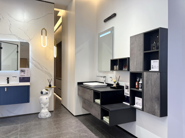 色彩的碰撞應用到產(chǎn)品與空間上,洗漱區(qū)+化妝區(qū)+如廁區(qū)+收納區(qū)的大空間組合定制,讓浴室空間具備更強的收納功能與個性化的表達。